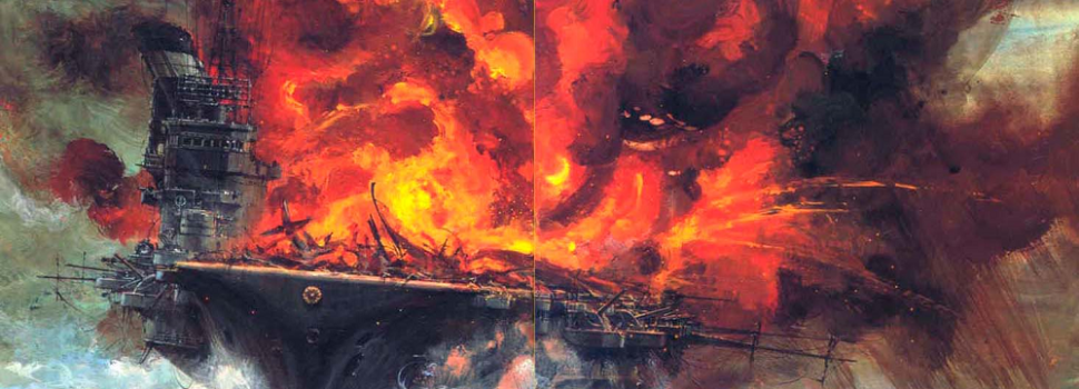 THE TORPEDOING OF JAPANESE AIRCRAFT CARRIER SHOKAKU, JUNE 19, BY SUBMARINE CAVALLA. Illustration by Jim Laurier. Image from The Philippine Sea by Mark Stille.